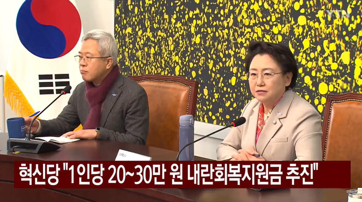 조국혁신당, "국민 1인당 내란회복지원금 30만 원 지급 제안"