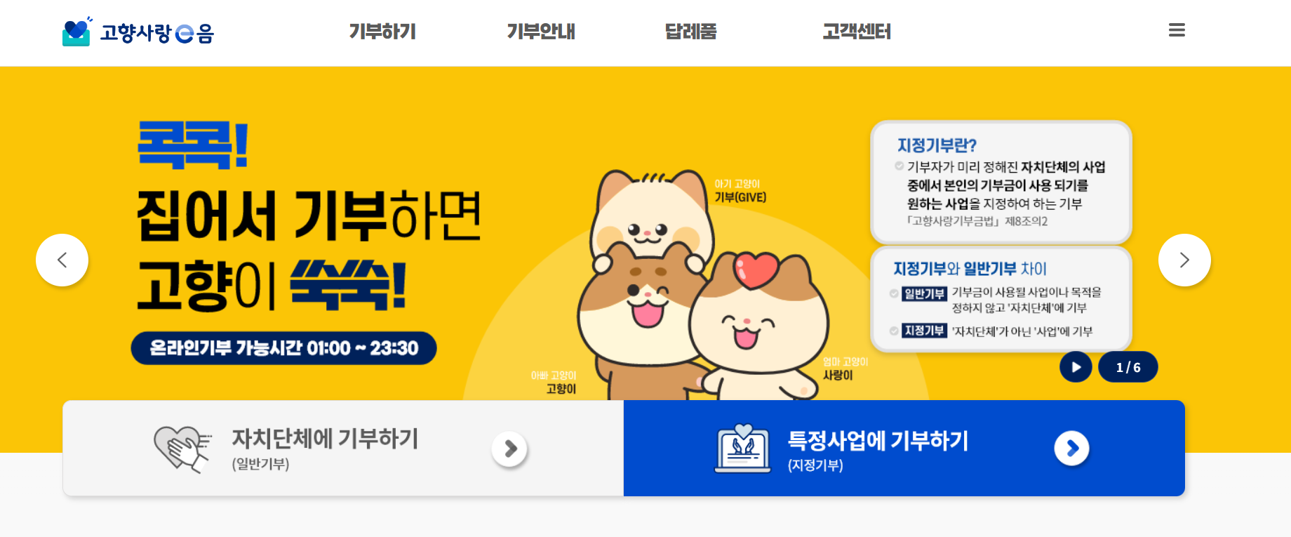 | 1 | 고향사랑e음 공식 홈페이지 접속 |