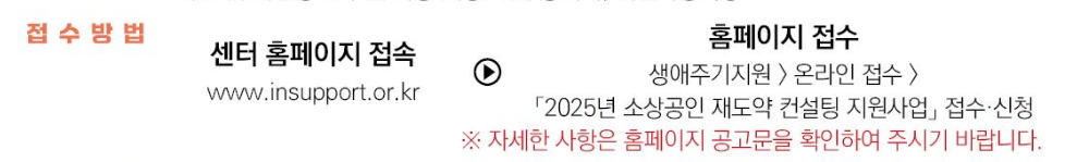 - 경영, 온라인 마케팅, 세무, 노무, 지식재산권 등 전문가 컨설팅 제공