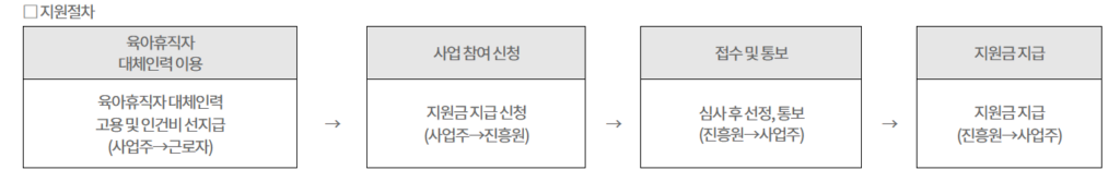 - 육아휴직으로 인한 대체 인력 채용 시 월 50만 원씩 최대 6개월간 지원 (총 300만 원)