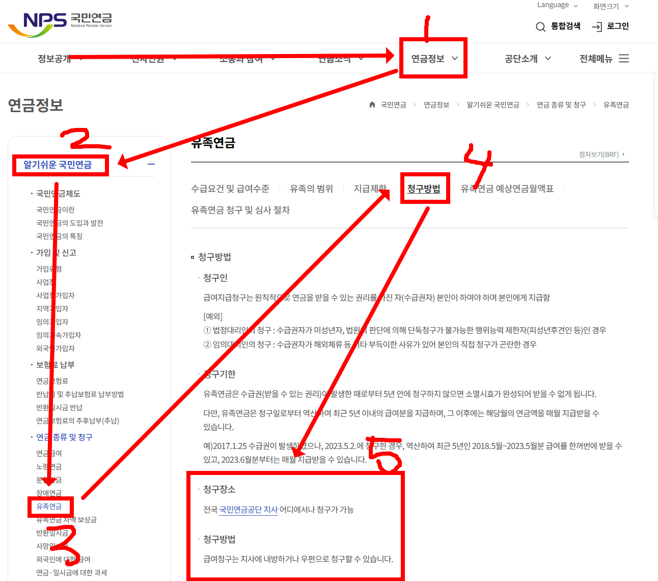 사망 후 5년 이내에 신청해야 소급 지급이 가능합니다.