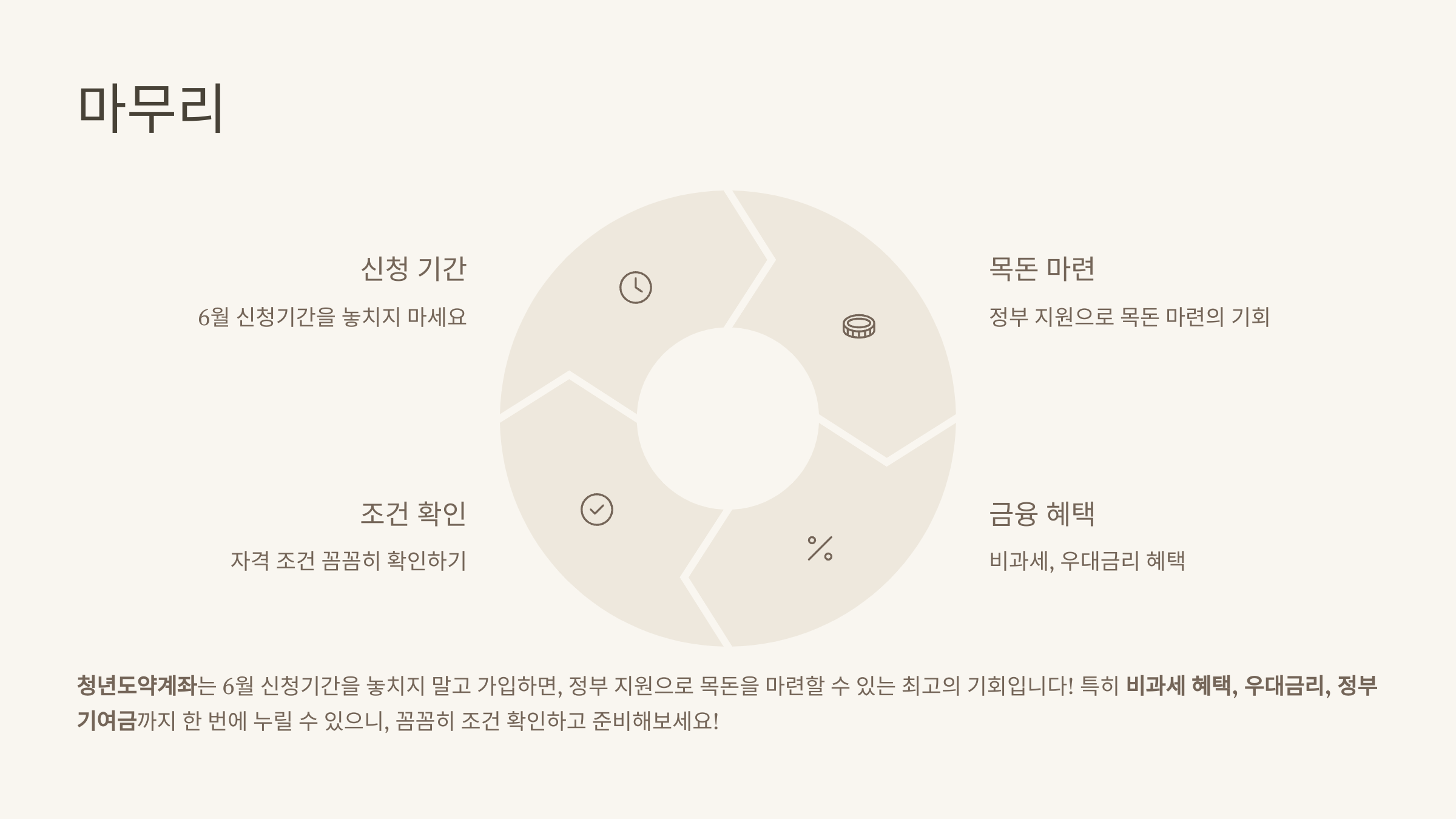 💡 청년도약계좌는 단순한 저축통장이 아니라, 정부와 함께 목돈을 만드는 든든한 자산형성 지원제도입니다.