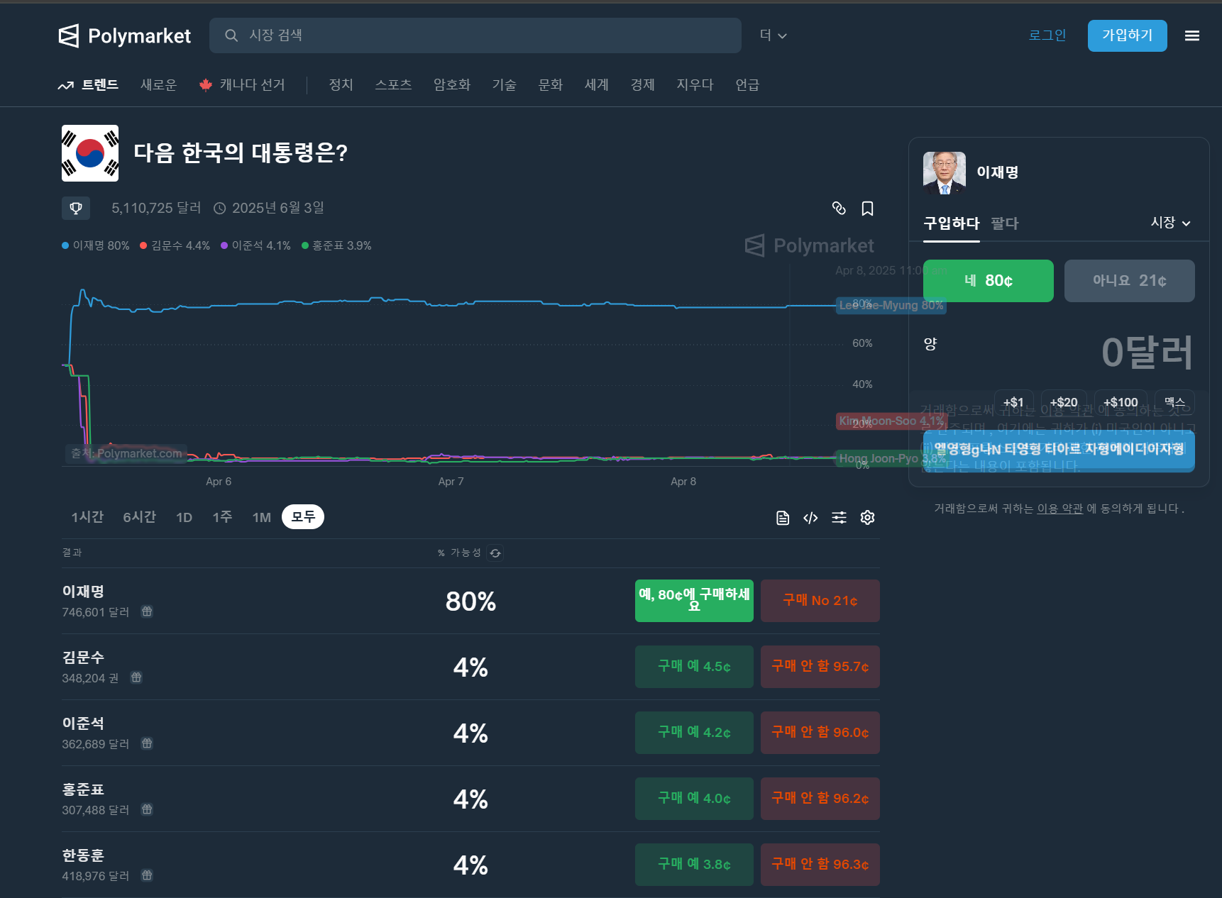 | 예측 주제 | 정치, 경제, 스포츠, 사회 이슈 등 |