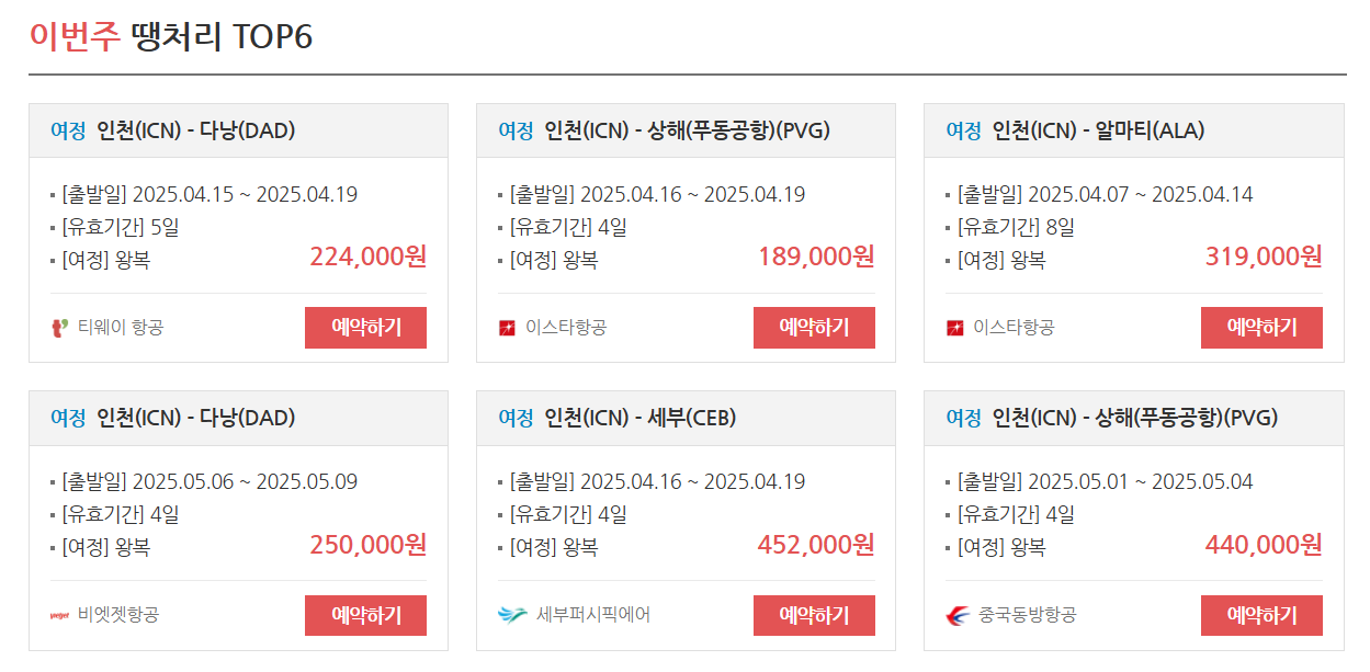 | 땡처리닷컴 | 도시별, 날짜별 초특가 항공권 검색 가능 | 땡처리닷컴 바로가기 |