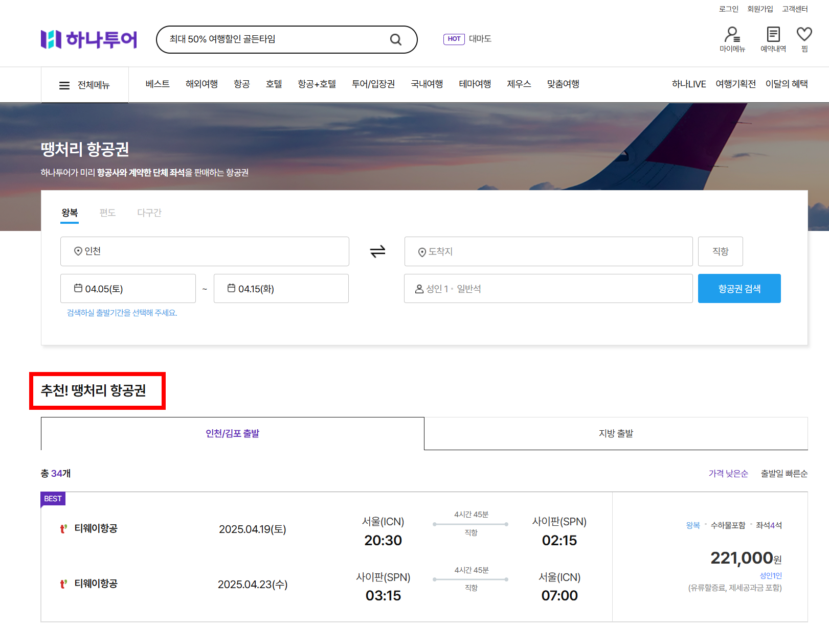 | 하나투어 공동구매 | 성수기에도 저렴한 장거리 항공권 제공 | 하나투어 바로가기 |